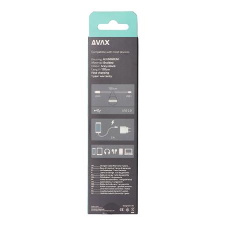 Avax Töltőkábel, USB-A - USB-C, 1,5 m, AVAX "CB301G", acélszürke