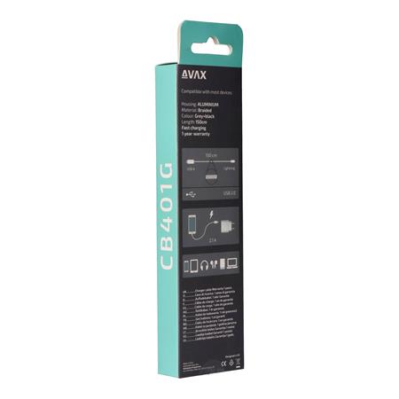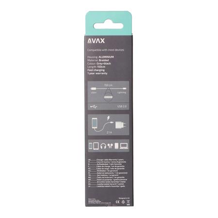 Avax Töltőkábel, USB-A - lightning (Apple), 20W, 1,5 m, AVAX "CB314 Steel", acélszürke