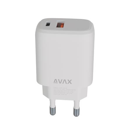 Avax Hálózati töltő, USB-A + USB-C, 12W, AVAX "CH312W Speedy", fehér
