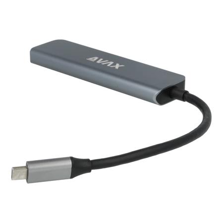 Avax USB-C elosztó-HUB, HDMI+USB-C+2xUSB 3.0, PD, AVAX "HB611 Connect+", fekete