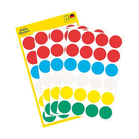 Avery zweckform Etikett, 18 mm, kör, AVERY ZWECKFORM, 5 különböző szín, 96 etikett/csomag