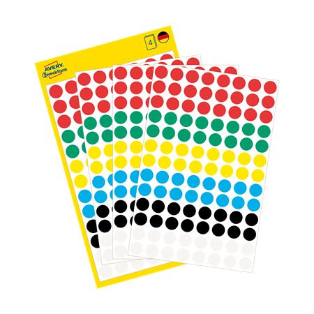 Avery zweckform Etikett, 8 mm, kör, AVERY ZWECKFORM, 5 különböző szín, 416 etikett/csomag