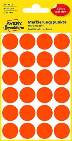 Avery zweckform Etikett, 18 mm, kör, AVERY ZWECKFORM, neon piros, 96 etikett/csomag