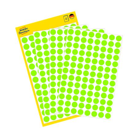 Avery zweckform Etikett, 8 mm, kör, AVERY ZWECKFORM, neon zöld, 416 etikett/csomag