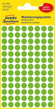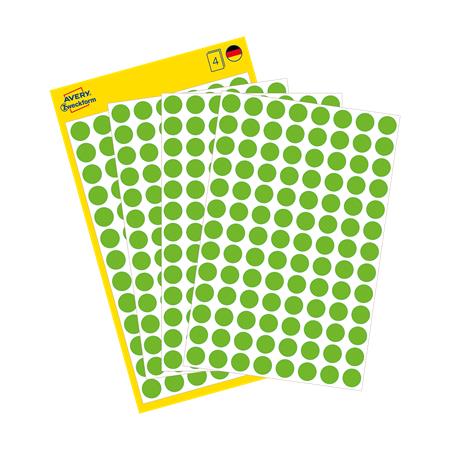 Avery zweckform Etikett, 8 mm, kör, eltávolítható, AVERY ZWECKFORM, fűzöld, 416 etikett/csomag