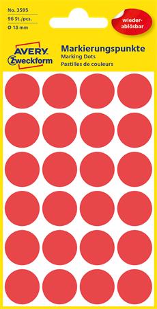 Avery zweckform Etikett, 18 mm, kör, eltávolítható, AVERY ZWECKFORM, piros, 96 etikett/csomag