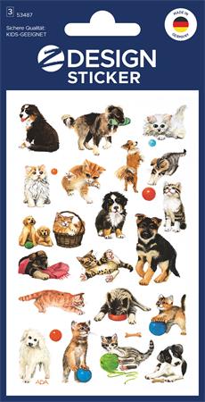 Avery zweckform Matrica, papír, 3 ív, 76x120 mm, AVERY ZWECKFORM, "Z-Desing No.53487", macska és kutya