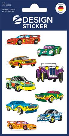 Avery zweckform Matrica, papír, 3 ív, 76x120 mm, AVERY ZWECKFORM, "Z-Desing No.53882", színes autók