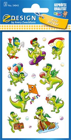 Avery zweckform Matrica, papír, 3 ív, 76x120 mm, AVERY ZWECKFORM, "Z-Desing No.54043", sárkányok
