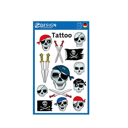 Avery zweckform Matrica, tetoválás, 1 ív, 76x120 mm, AVERY ZWECKFORM, "Z-Desing No.56632", kalóz halálfejek kardokkal