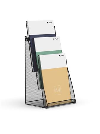 Alba Prospektustartó, fémhálós, asztali, álló, A4, 3 rekesz, ALBA, fekete