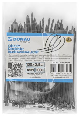 Donau Kábelkötegelő, gyorskötöző, 2,5x100mm, DONAU "Tech", fekete