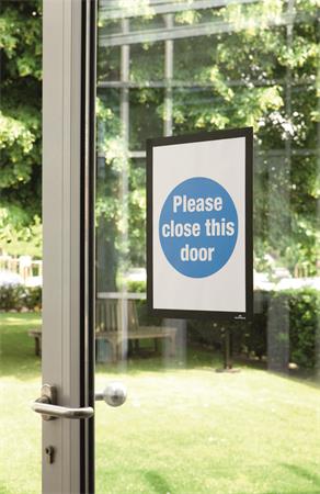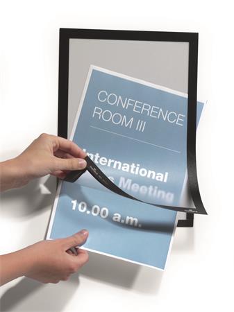 DURAFRAME® infokeret, öntapadó hátlappal és mágneses előlappal többféle méretben. A DURAFRAME® segítségével profin és kényelmesen helyezhetjük ki dokumentumainkat. Egyszerűen vegyük le a védőfóliát és ragasszuk fel az öntapadó keretet bármilyen sima, kemény felületre, például ablakra, iratszekrényre vagy ajtóra. A DURAFRAME® könnyedén áthelyezhető például üveg felületeken anélkül, hogy nyomot hagyna.
