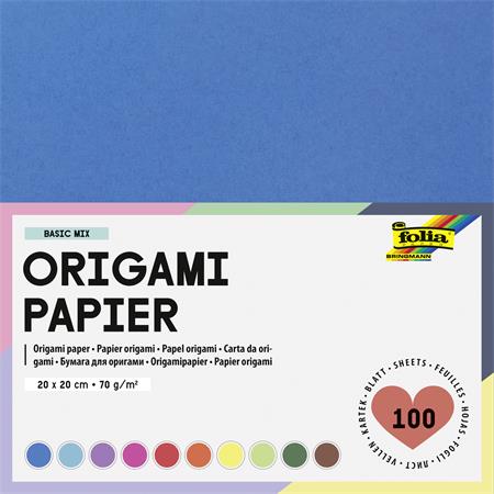 Folia Origami papír, 20x20 cm, 70 g, 100 lap, FOLIA, vegyes színek