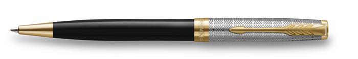Parker Golyóstoll, 1 mm, metál fekete tolltest, arany klip, PARKER "Royal Sonnet Premium", fekete