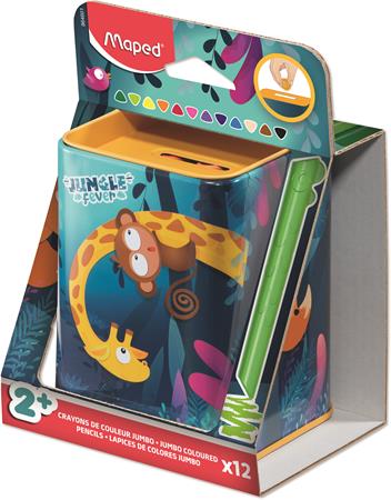 Maped Színes ceruza készlet, fém perselyben, MAPED „Jungle Fever Infinity Kidy”, 12 különböző szín