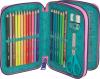 Praktikus töltött tolltartó divatos mintával, amely minden szükséges írószert tartalmaz a tanórákhoz. Két emeletes kialakításának köszönhetően a ceruzák, radírok, ollók és egyéb eszközök átláthatóan rendszerezhetők benne.