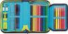 Töltött tolltartó divatos mintával, amely minden szükséges írószert tartalmaz a tanórákhoz. Praktikus kialakításának köszönhetően a ceruzák, radírok, ollók és egyéb eszközök átláthatóan rendszerezhetők benne.