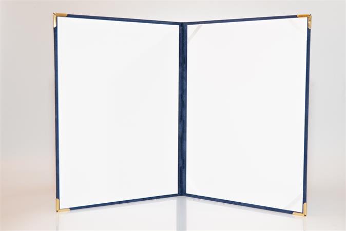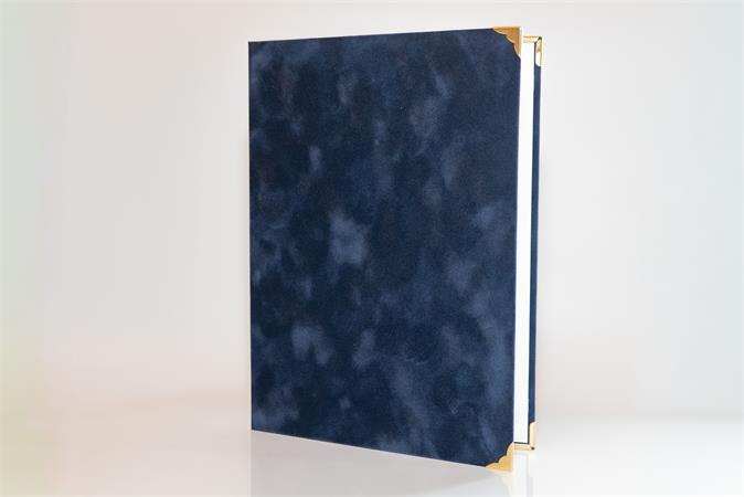 . Oklevéltartó, A4, exkluzív, plüss, 4 fém sarokkal, kék