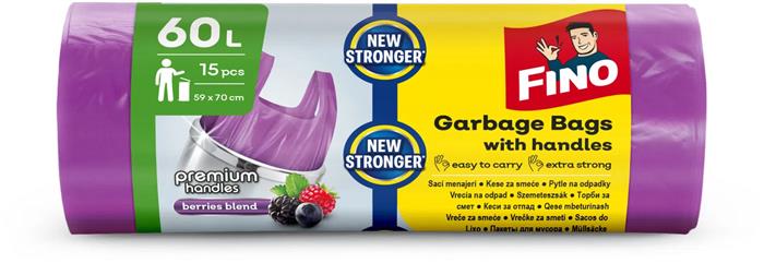 Fino Szemeteszsák, köthető füles, illatosított, 60 l, 15 db, 59x70 cm, 16 µ, FINO "Premium handles", lila