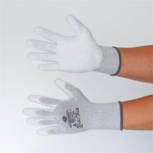 Karbonszálas-poliészter szerkezetű, PU tenyérmártott kesztyű, amely antisztatikus (ESD) tulajdonsággal rendelkezik, így ideális elektronikai összeszereléshez vagy olyan munkakörnyezetbe, ahol fontos az elektrosztatikus kisülés elkerülése.