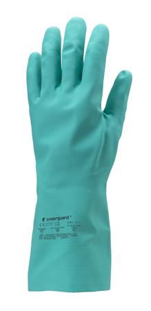 . Védőkesztyű, nitril, vegyszerálló, érdesített, kesztyű, 10/XL méret, zöld