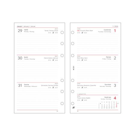 Saturnus Kalendárium betét, tervező, heti, "M", SATURNUS, fehér 2026