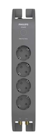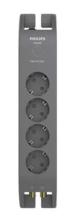 Philips Elosztósor, 4 csatlakozóaljzat, túlfeszültség-védelemmel, 2 m kábel, PHILIPS, sötétszürke