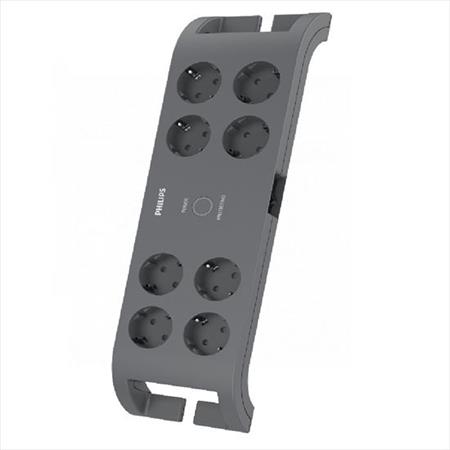 Philips Elosztósor, 8 csatlakozóaljzat, túlfeszültség-védelemmel, 2 m kábel, PHILIPS, sötétszürke