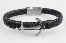 Art crystella Karkötő, fekete fonott bőr, mágneszárral, ezüst színű horgonnyal, 22,5cm, ART CRYSTELLA®