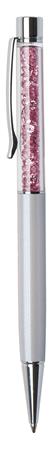 Art crystella Golyóstoll, krémfehér, felül rózsaszín SWAROVSKI® kristállyal töltve, 14 cm, ART CRYSTELLA®