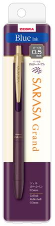 Zebra Zseléstoll, 0,33 mm, nyomógombos, padlizsánlila tolltest, ZEBRA "Sarasa Grand", kék
